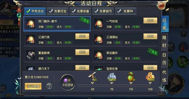 日常活动和资源规划决定了成长效率。主线任务和副本是经验与装备的主要来源,但像门派运镖、侠客岛等限时活动会掉落稀有材料。银币要优先用于装备洗炼和技能升级,而元宝可以投资在高级注灵石或特殊宝石上。挖宝玩法有概率出极品装备,但需要藏宝图支持,建议组队提高收益。记得每日清空活跃度奖励,其中包含强化石和专属经验丹等实用道具。